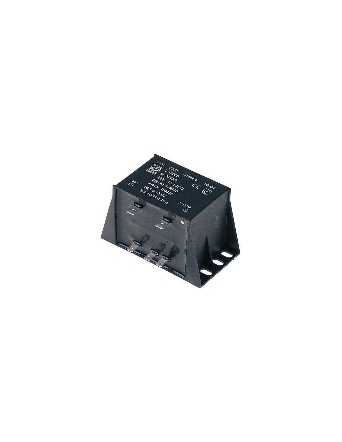 Transformer primary 230VAC 16,5 VAC secondary 2x15 VA connection male faston 50/60Hz